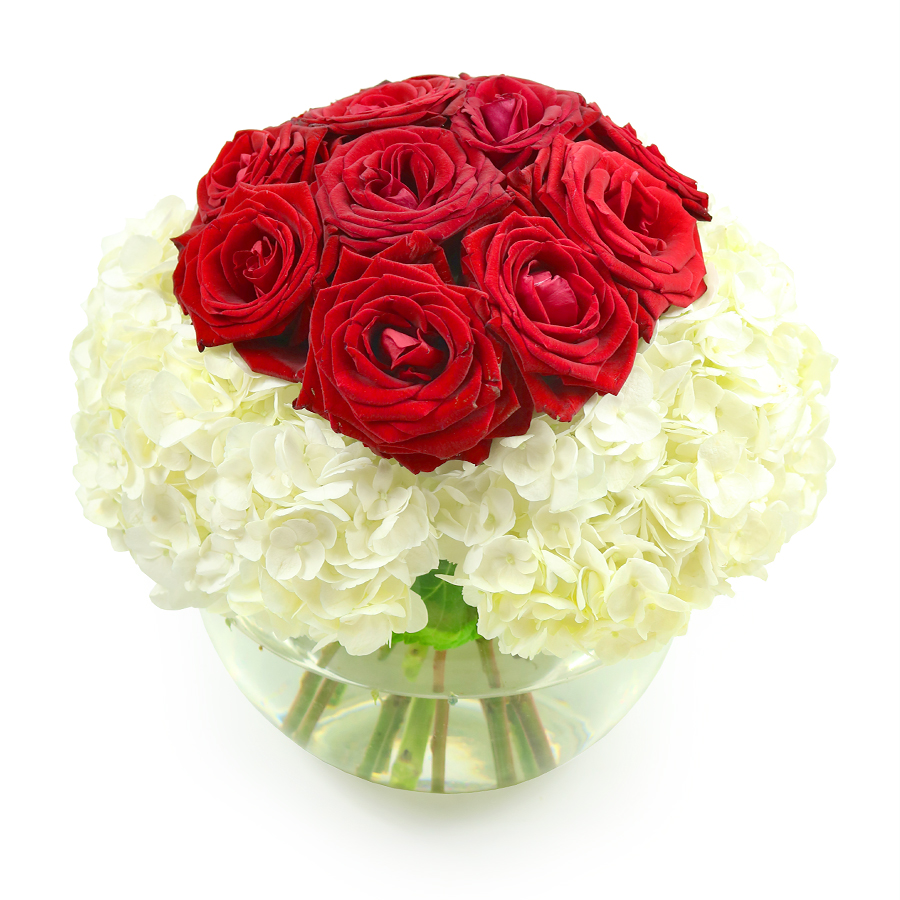 Radiant red roses are the essence of true romance. Our genuine red roses in the perfect combination with white hydrangeas are selected for their size and perfection. It’s a gift of sophistication and luxury meant for one who is truly magnificent!