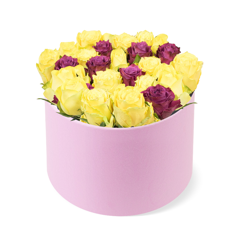 This irresistible combination of bright yellow roses and fascinating purple shade roses is an adorable way to express your true feeling to your one and only! Yellow roses also symbolize true friendship which make this floral arrangement a perfect gift to a close friend!